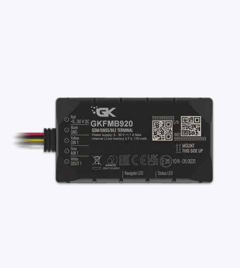 GeoKall IoT GKFMB920 is compact and smart tracker with Bluetooth connectivity, internal High Gain GNSS and GSM antennas and integrated backup battery. GKFMB920 is designed for light vehicles tracking in applications like insurance telematics, rental cars, recovery of stolen cars, public safety services, delivery transport, taxi and much more. Inputs/outputs extend device usage scenarios. Digital input can be used for ignition, door or alarm button status monitoring. Vehicle remote immobilizing may be achieved using GKFMB920 digital output.