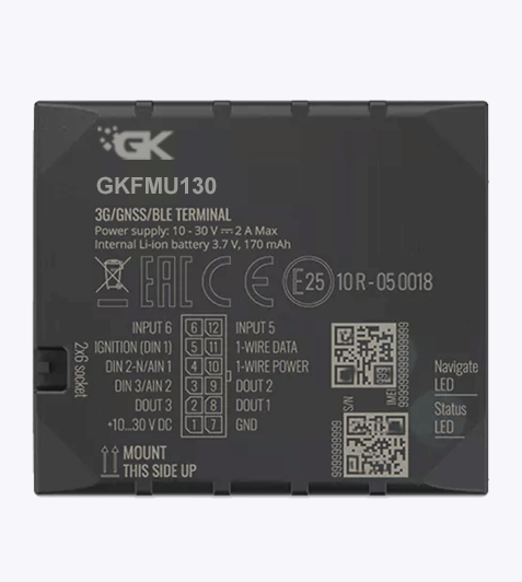 GKFMU130 is small and professional real-time tracking terminal with GNSS and 3G/GSM connectivity and backup battery. Device equipped with GNSS/Bluetooth and 3G modules, internal GNSS, 3G antennas, configurable digital, analogue inputs and digital outputs, negative input, impulse inputs. It is perfectly suitable for applications where location acquirement of remote objects is needed: fleet management, car rental companies, taxi companies, public transport, logistics companies, personal cars and so on.